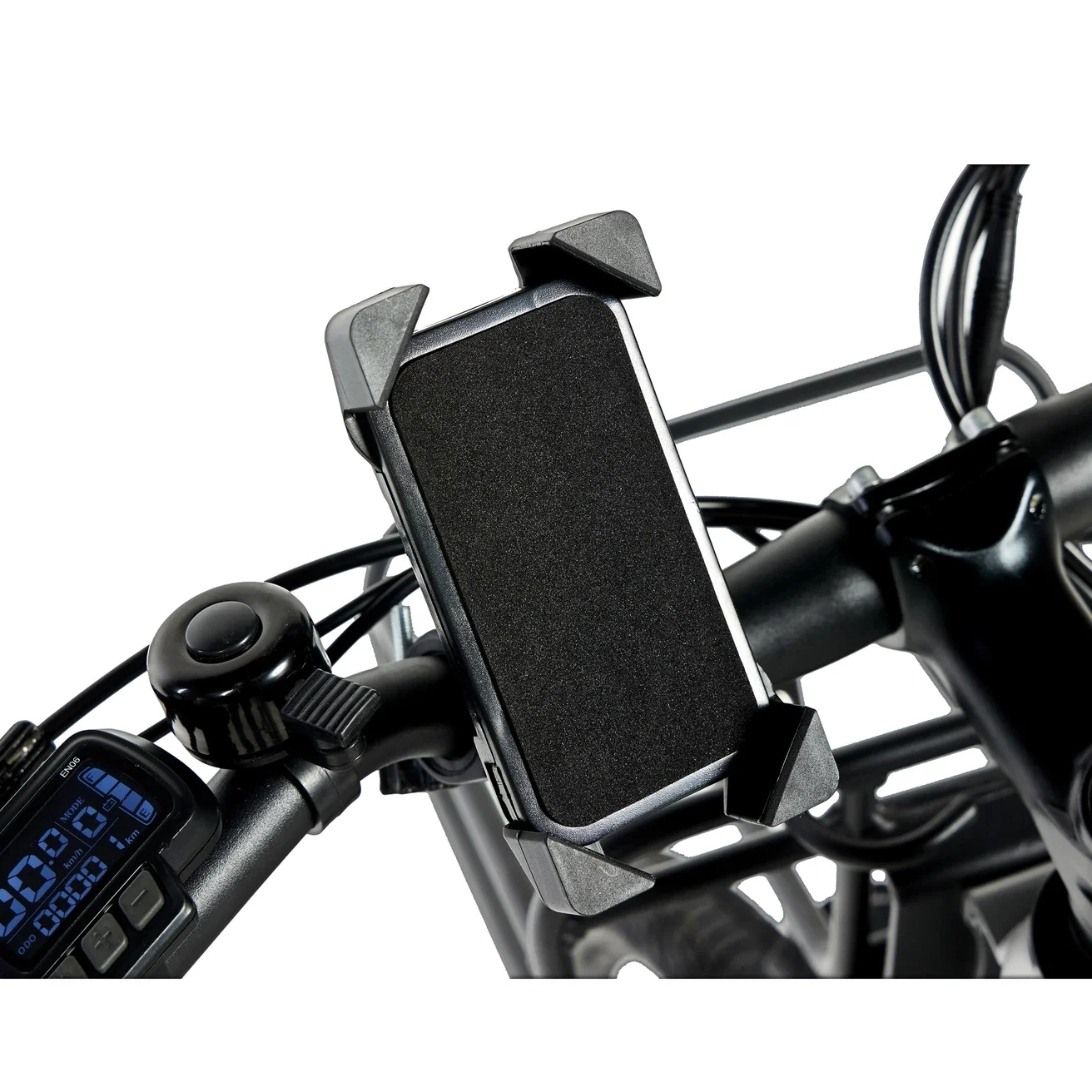 ⬤ Livré avec support pour téléphone, porte-bagages avant et antivol.